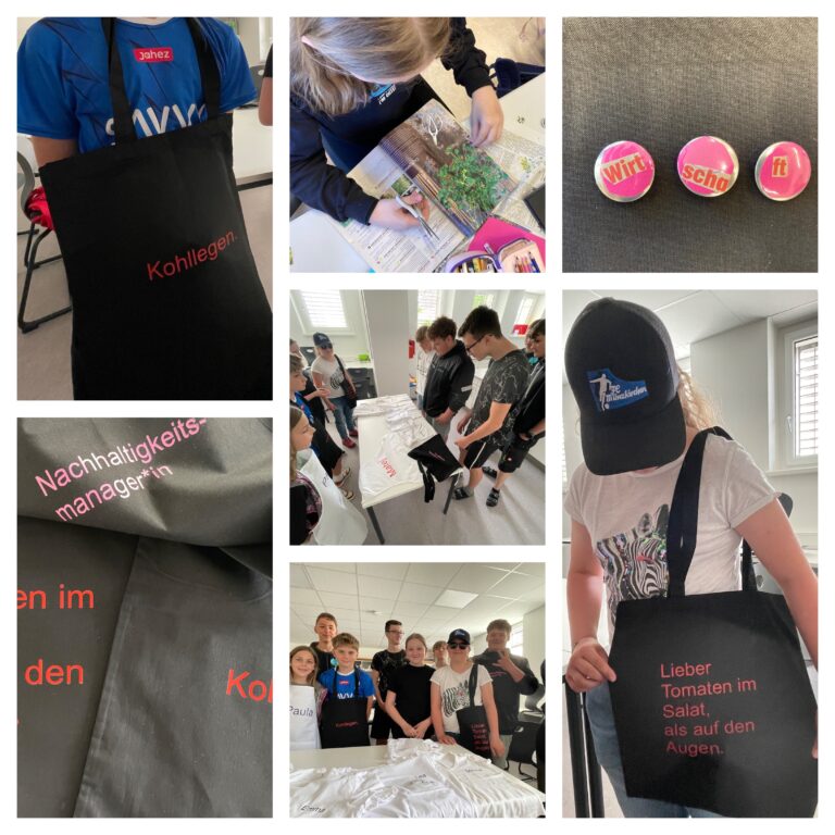 Die Aktionswoche und Markttage der MS Mürzkirchen standen unter dem Motto “Textil mit Stil”. Im Rahmen der Projektwoche lernten die Schüler und Schülerinnen wirtschaftliche Abläufe kennen und wurden selbst kreativ. Mit dem Schwerpunkt auf das Thema Nachhaltigkeit und Kreislaufwirtschaft bedruckten sie alte T-Shirts, Schürzen und Stofftaschen mit “nachhaltigen Texten”. So entstanden Sprüche wie “Lieber Tomaten im Salat, als auf den Augen”, die zum Nachdenken anregen. Gemeinsam mit einer gesunden Jause wurden die Produkte dann am Marktstand verkauft. So wurden Nachhaltigkeitsthemen an die Frau und an den Mann gebracht.